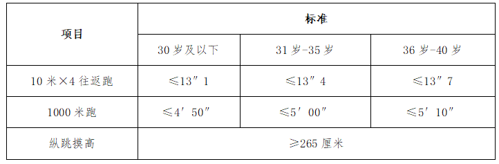 三、报名程序 (一)报名方式 2025年12月13日9时—2025年12月19日17时,报名人员登录公招网报名:www.gongzhao.com.cn进行报名,每人限报1个岗位,多报则取消应聘资格。 (二)报名要求 1.开始报名前,应认真阅读公告,完全了解本次公开招聘的政策和岗位要求,然后按步骤操作; 2.网上报名实行严格的自律制度,报名人员对提交的报名信息真实性负责,凡发现填报信息与实际情况不一致的,取消报名资格; 3.报名人员按照报名系统提示填报上传相关信息; 4.报名人员报名信息提交审核后将被锁定,在未反馈审核结果前不能修改。一般情况下,审核员48小时内会在报名系统上回复审核结果。审核未过的,可根据提示的未过原因,修改信息并重新提交审核;审核通过的,将不能再修改。报名时间截止后未通过审查的,不能再次提交报名申请; 5.本次考试不收取报名费; 6.网上报名成功并审核通过人员,登录报名系统打印后续测试准考证,打印时间另行通知; 7.凡是在规定时间内未完成相关报名、打印准考证等操作的,将被视为自动放弃。同时,报名和考试期间务必保管好个人的证件信息,因个人原因造成丢失、被他人盗用和信息被恶意篡改而影响报名和考试的,责任自负。 四、考试程序 (一)技能测试(书记员岗位) 报考书记员岗位的人员在笔试前须进行计算机听打、看打技能测试。技能测试使用台式电脑、标准键盘,预装有极品五笔、极点五笔、万能五笔、王码五笔、搜狗拼音、百度拼音、QQ拼音、谷歌拼音、紫光拼音、讯飞拼音输入法,严禁报名人员携带键盘以及U盘、光盘等外部存储连接设备现场自行安装输入法。 技能测试内容包括听打录入、看打录入两部分,时间各10分钟。录入满分各100分,两项录入有一项达到最低标准者,方可有资格进入后续程序。若两项成绩均达到最低标准者,取两项录入的较高成绩作为技能测试成绩。其最低标准为:录入速度平均每分钟80字(含本数)且正确率达到90%(含本数),两项均未达到该标准的,不得进入笔试。 (二)体能测试(警务辅助岗位) 报考警务辅助岗位的人员在笔试前需进行体能测试。体能测试项目和标准参照《公安机关录用人民警察体能测试项目和标准(暂行)》执行,共测试三项,采取单项淘汰制,单项任意一项不合格,即为不合格。全部达标为合格,方可进入笔试。测试标准如下。