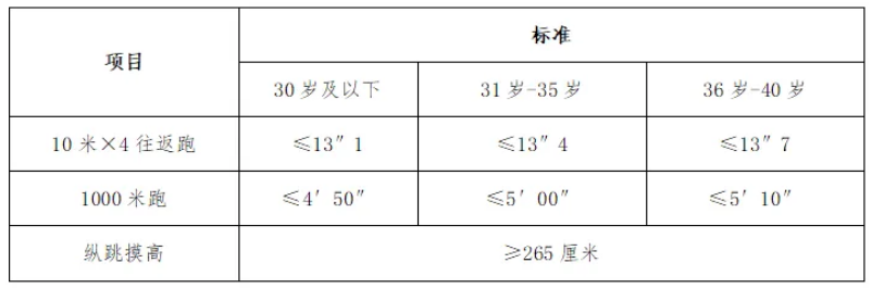 三、报名程序 (一)报名方式 2025年12月13日9时——2025年12月19日17时,报名人员登录公招网报名:www.gongzhao.com.cn进行报名,每人限报1个岗位,多报则取消应聘资格。 (二)报名要求 1.开始报名前,应认真阅读公告,完全了解本次公开招聘的政策和岗位要求,然后按步骤操作; 2.网上报名实行严格的自律制度,报名人员对提交的报名信息真实性负责,凡发现填报信息与实际情况不一致的,取消报名资格; 3.报名人员按照报名系统提示填报上传相关信息; 4.报名人员报名信息提交审核后将被锁定,在未反馈审核结果前不能修改。一般情况下,审核员48小时内会在报名系统上回复审核结果。审核未过的,可根据提示的未过原因,修改信息并重新提交审核;审核通过的,将不能再修改。报名时间截止后未通过审查的,不能再次提交报名申请; 5.本次考试不收取报名费; 6.网上报名成功并审核通过人员,登录报名系统打印后续测试准考证,打印时间另行通知; 7.凡是在规定时间内未完成相关报名、打印准考证等操作的,将被视为自动放弃。同时,报名和考试期间务必保管好个人的证件信息,因个人原因造成丢失、被他人盗用和信息被恶意篡改而影响报名和考试的,责任自负。 四、考试程序 (一)技能测试(书记员岗位) 报考书记员岗位的人员在笔试前须进行计算机听打、看打技能测试。技能测试使用台式电脑、标准键盘,预装有极品五笔、极点五笔、万能五笔、王码五笔、搜狗拼音、百度拼音、QQ拼音、谷歌拼音、紫光拼音、讯飞拼音输入法,严禁报名人员携带键盘以及U盘、光盘等外部存储连接设备现场自行安装输入法。 技能测试内容包括听打录入、看打录入两部分,时间各10分钟。录入满分各100分,两项录入有一项达到最低标准者,方可有资格进入后续程序。若两项成绩均达到最低标准者,取两项录入的较高成绩作为技能测试成绩。其最低标准为:录入速度平均每分钟80字(含本数)且正确率达到90%(含本数),两项均未达到该标准的,不得进入笔试。 (二)体能测试(警务辅助岗位) 报考警务辅助岗位的人员在笔试前需进行体能测试。体能测试项目和标准参照《公安机关录用人民警察体能测试项目和标准(暂行)》执行,共测试三项,采取单项淘汰制,单项任意一项不合格,即为不合格。全部达标为合格,方可进入笔试。测试标准如下。